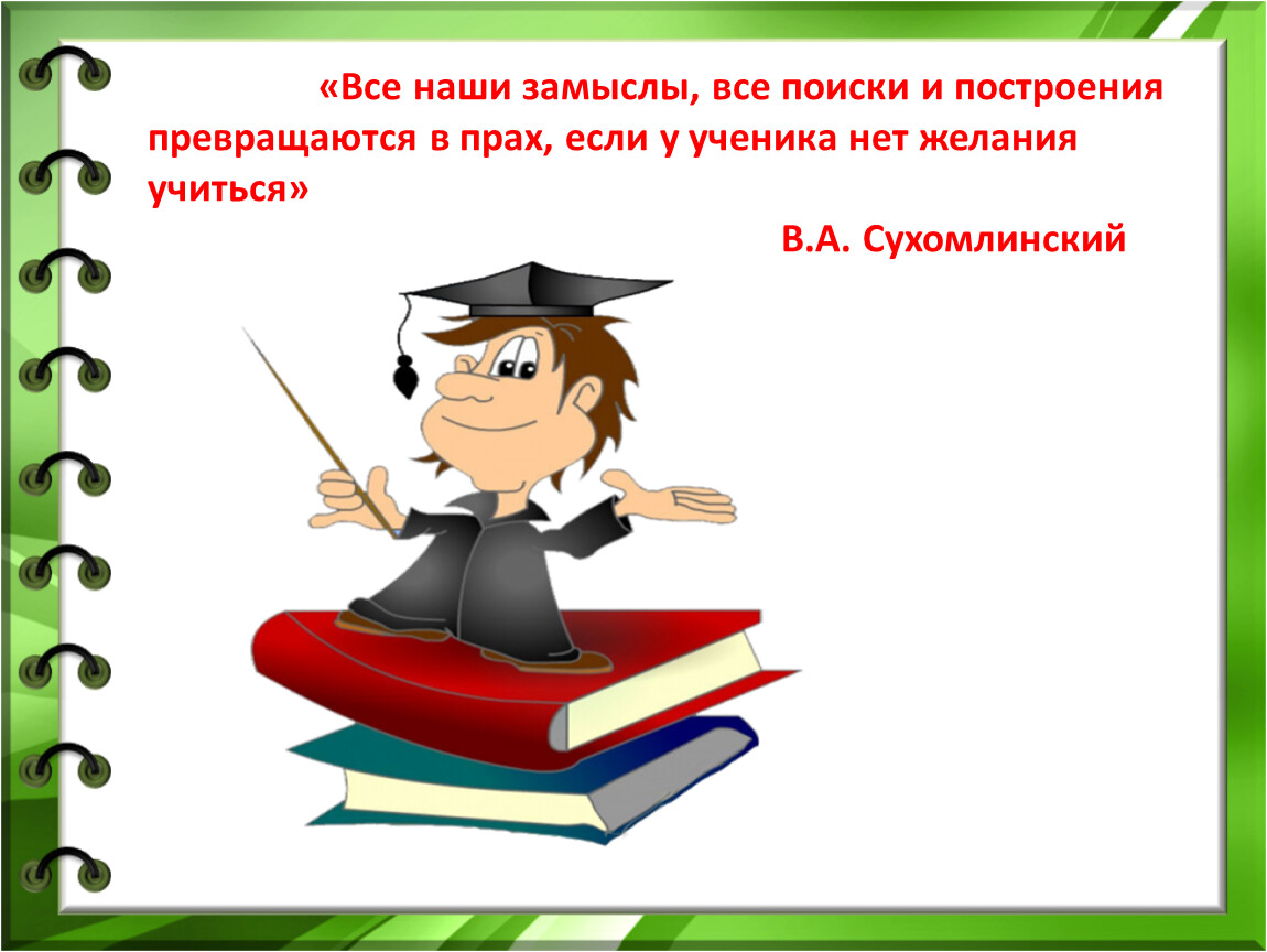 «Все наши замыслы, все поиски и построения превращаются в прах, если у ученика нет желания учиться» В.А. Сухомлинский