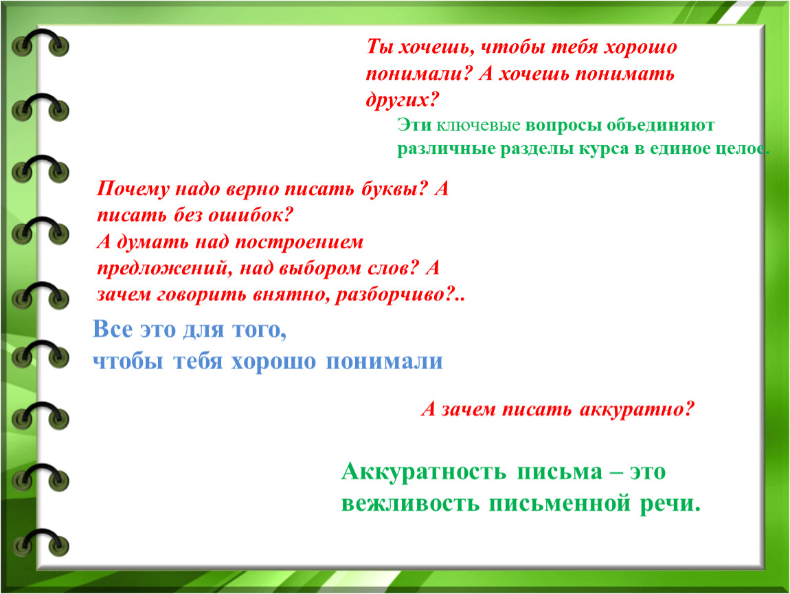 озвучивание требований перед изучением темы делает открытым процесс обучения.
