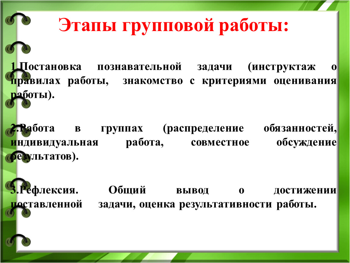 участие учащихся в оценке хода работы и достигнутых результатов.