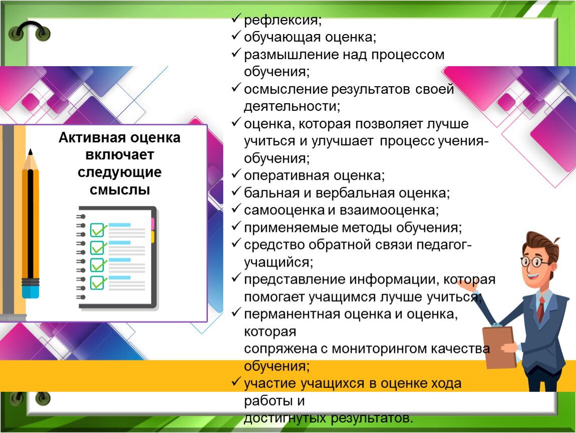 Активная оценка включает следующие смыслы