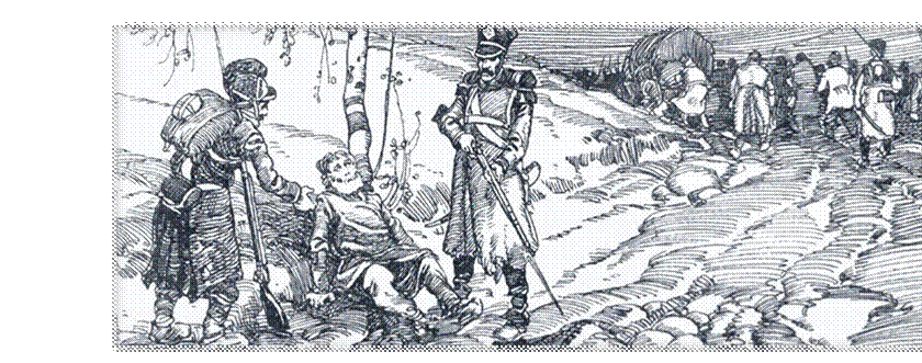 «Один раз француз, которого брал Тихон, выстрелил в него из пистолета и попал ему в мякоть спины… Случай этот имел на Тихона только то влияние, что после своей раны он редко приводил пленных».