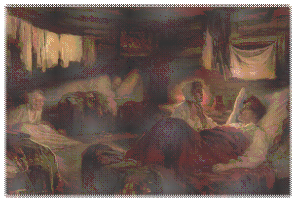 «С Каратаевым, на третий день выхода из Москвы, сделалась та лихорадка, от которой он лежал в московском гошпитале, и по мере того как Каратаев ослабевал, Пьер отдалялся от него… чувствуя усилившийся теперь запах, который издавал от себя Каратаев, Пьер отходил от него подальше и не думал о нем».