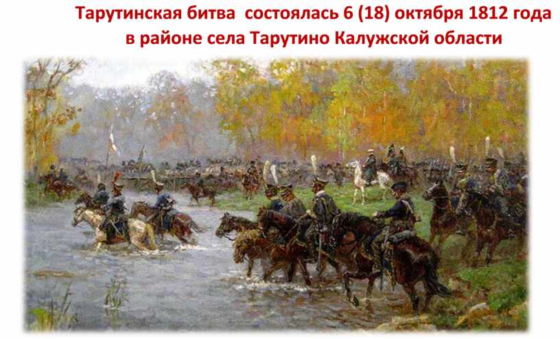 Тарутинская битва состоялась 6 (18) октября 1812 года в районе села Тарутино Калужской области