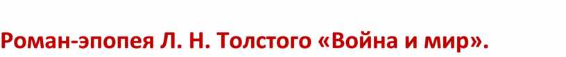 Роман-эпопея Л. Н. Толстого «Война и мир».