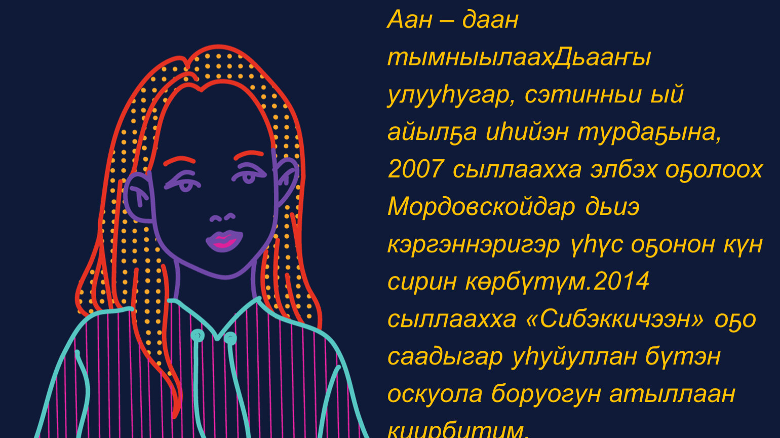 Аан – даан тымныылаахДьааҥы улууһугар, сэтинньи ый айылҕа иһийэн турдаҕына, 2007 сыллаахха элбэх оҕолоох Мордовскойдар дьиэ кэргэннэригэр үһүс оҕонон күн сирин көрбүтүм.2014 сыллаахха «Сибэккичээн» оҕо саадыгар уһуйуллан бүтэн оскуола боруогун атыллаан киирбитим.