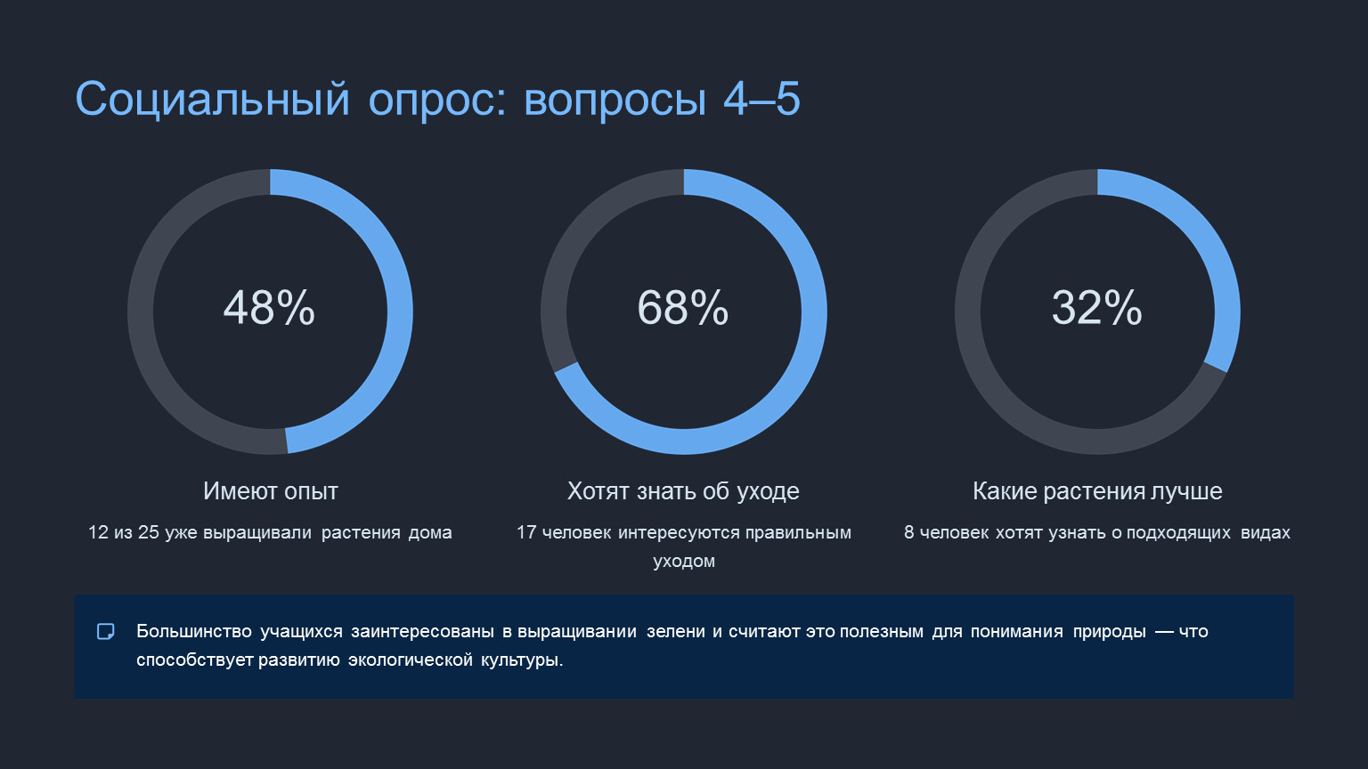 Большинство учащихся заинтересованы в выращивании зелени и считают это полезным для понимания природы — что способствует развитию экологической культуры.