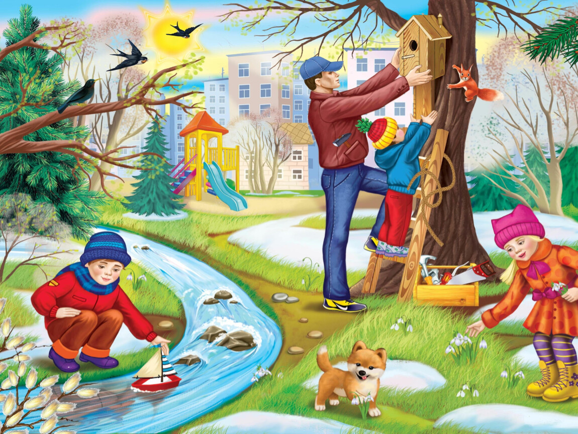 - закреплять знания характерных признаков времен года, названий месяцев, дней недели.