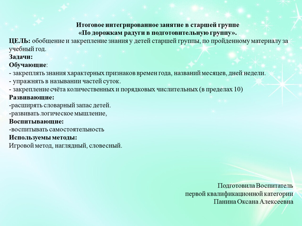 Итоговое интегрированное занятие в старшей группе