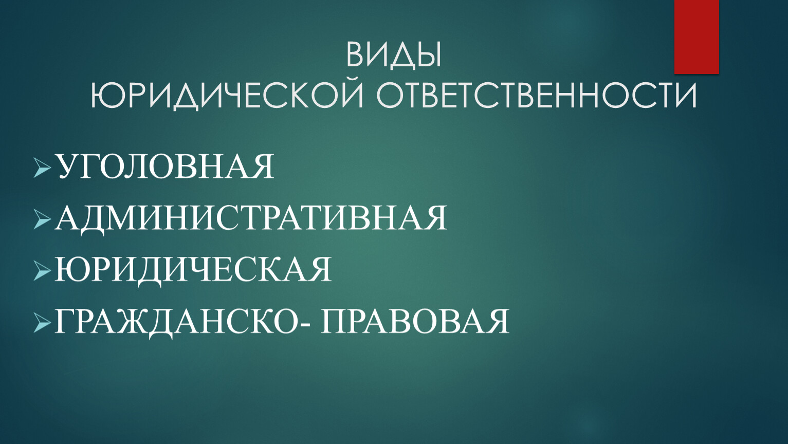 Ответственность - это обязательство, это то, что по смыслу очень близко к понятию обязанность. Существуют два основных вида ответственности: моральная и юридическая. Они охватывают все отношения человека с другими людьми, с коллективом, обществом, государством