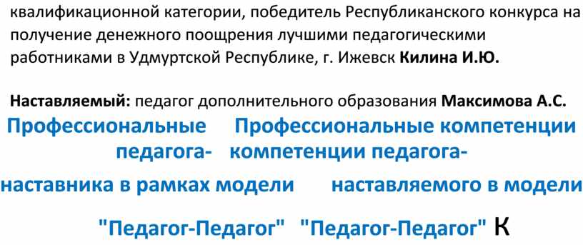 Профессиональные компетенции педагоганаставника в рамках модели «Педагог-Педагог»