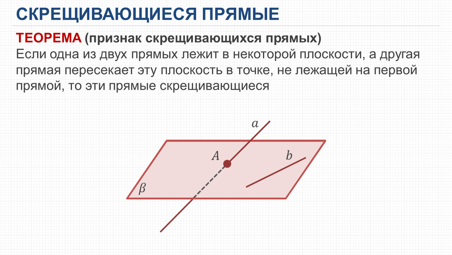ТЕОРЕМА (признак скрещивающихся прямых)