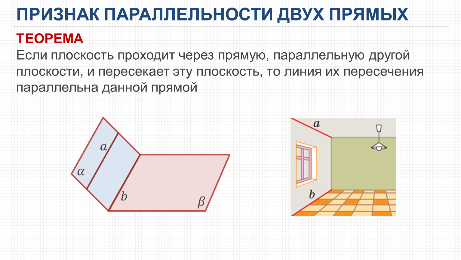 ПРИЗНАК ПАРАЛЛЕЛЬНОСТИ ДВУХ ПРЯМЫХ