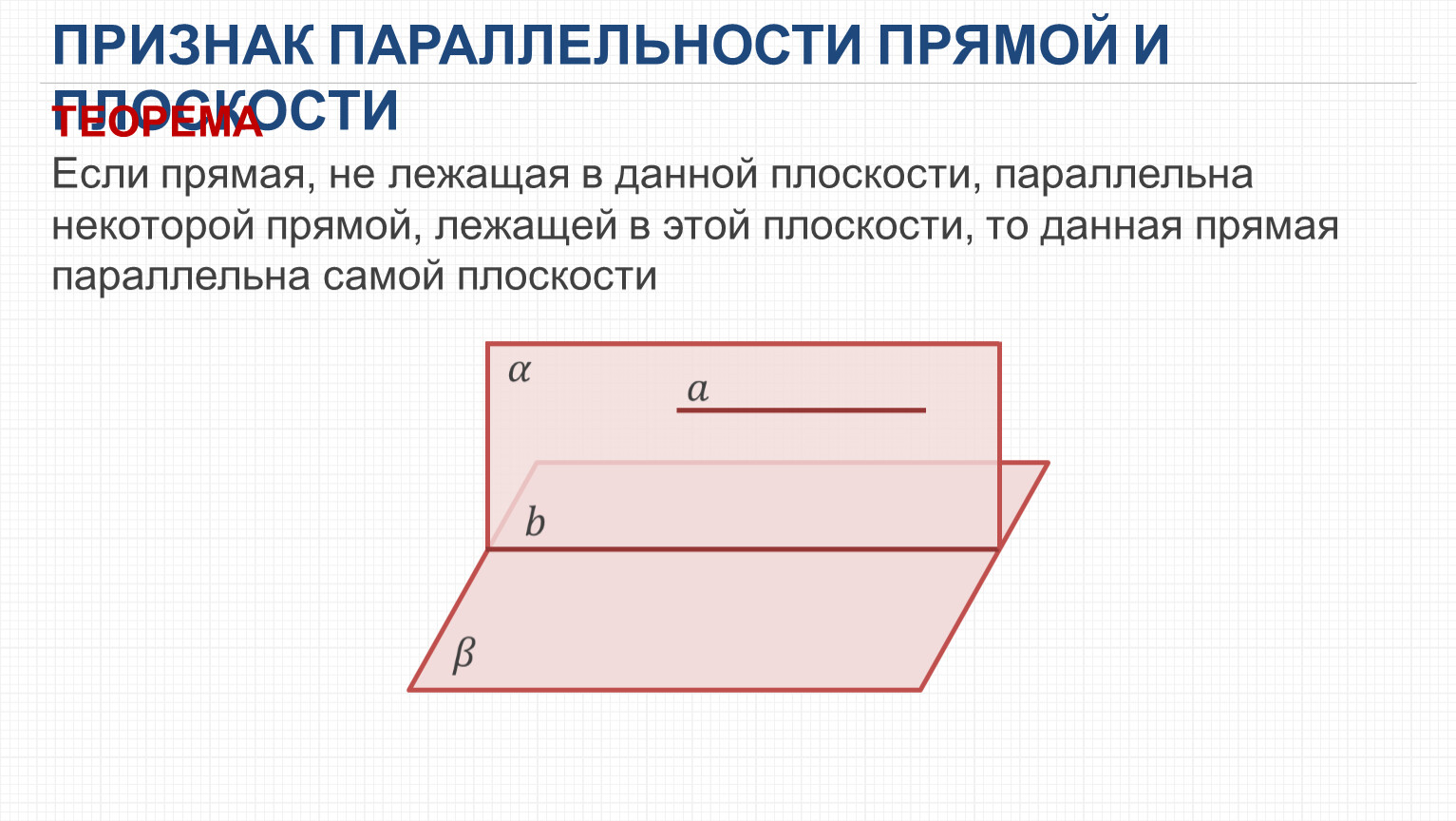 ПРИЗНАК ПАРАЛЛЕЛЬНОСТИ ПРЯМОЙ И ПЛОСКОСТИ
