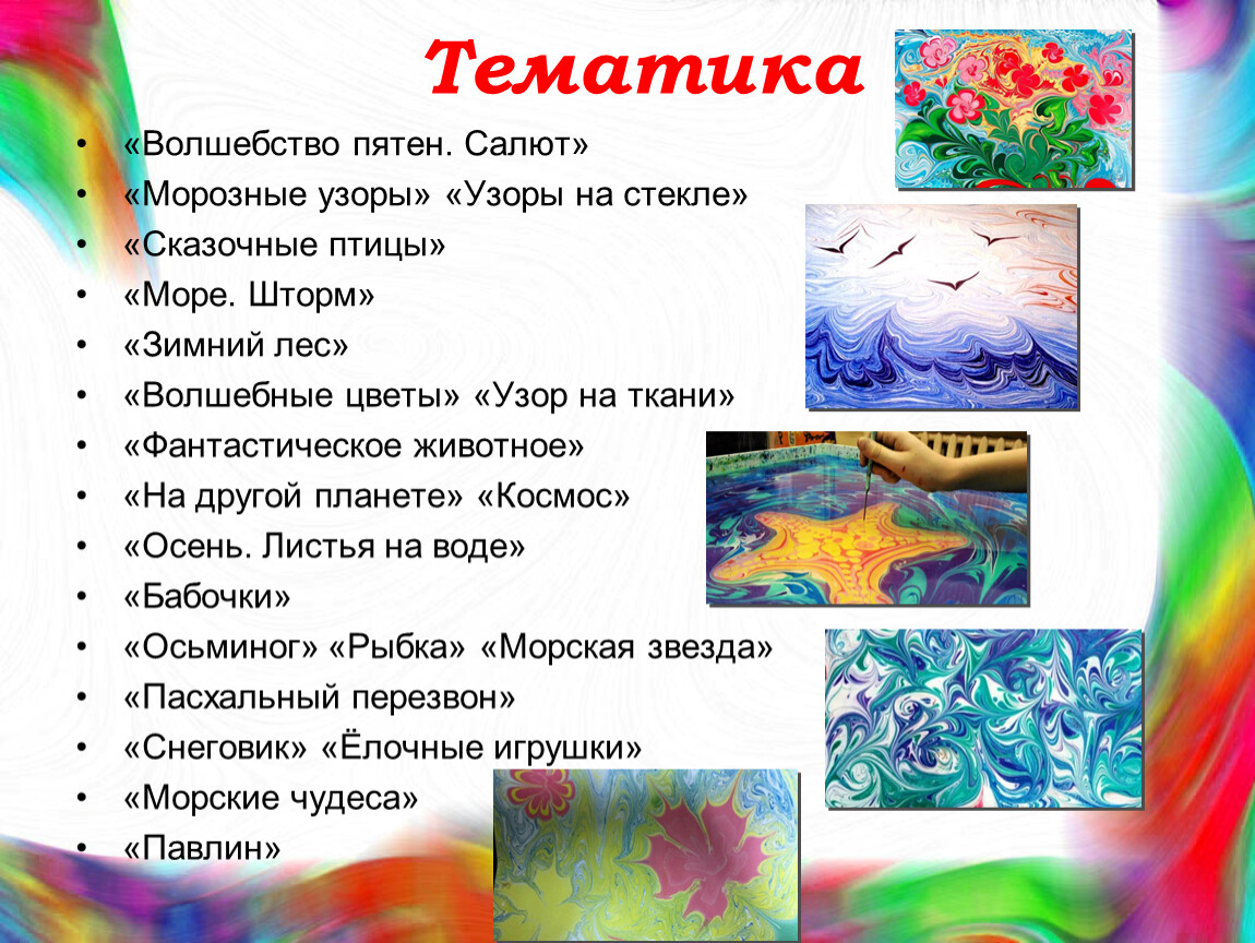 Эбру относится к «правополушарному» рисованию. Это не академическое рисование по заданным образцам, а раскрытие творческой индивидуальности человека. Это рисование эмоциями и чувствами.