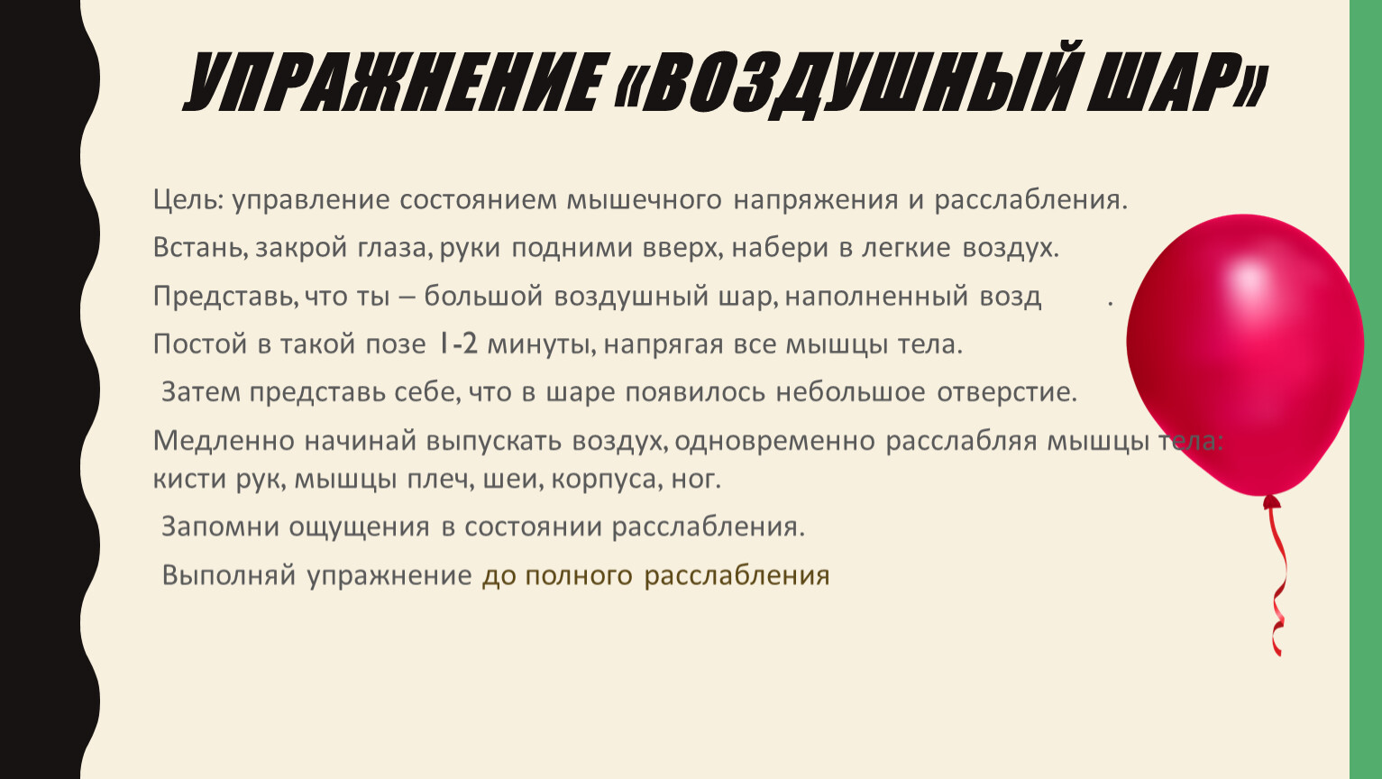 Представь, что ты – большой воздушный шар, наполненный воздухом.