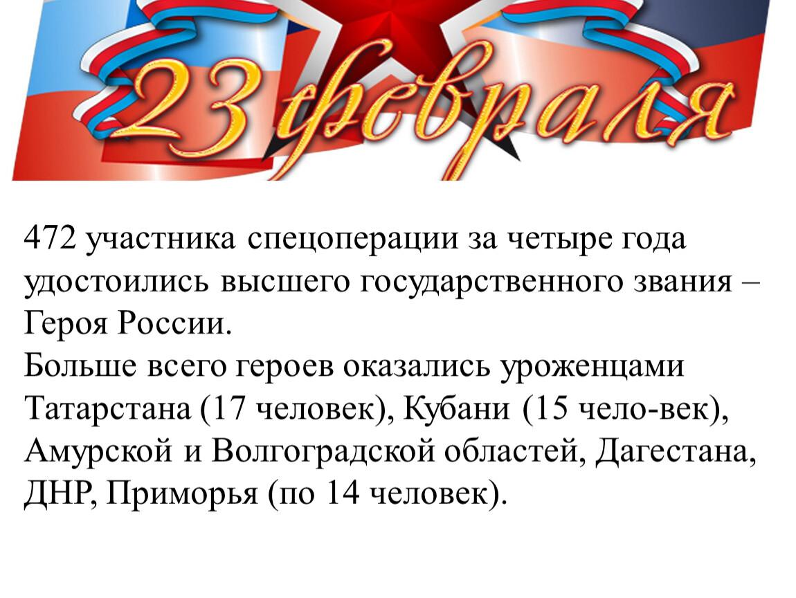 472 участника спецоперации за четыре года удостоились высшего государственного звания – Героя России.