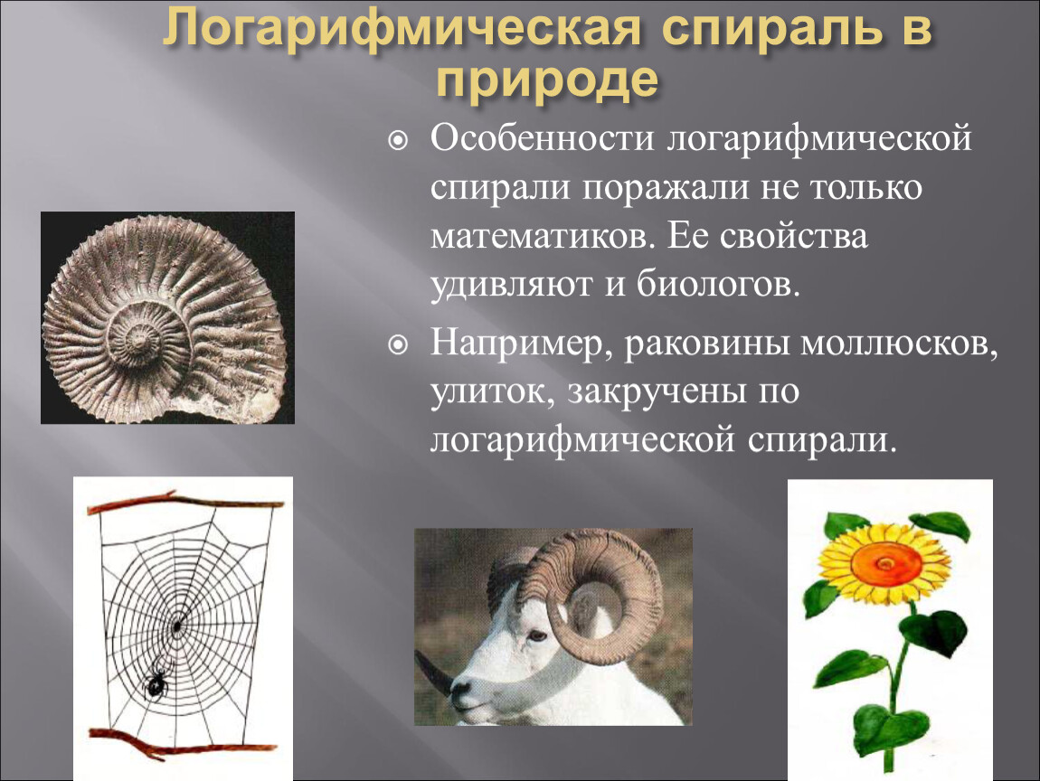 Особенности логарифмической спирали поражали не только математиков. Ее свойства удивляют и биологов.