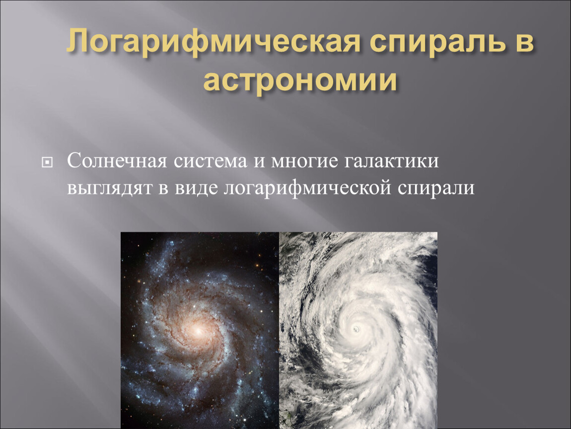 Солнечная система и многие галактики выглядят в виде логарифмической спирали