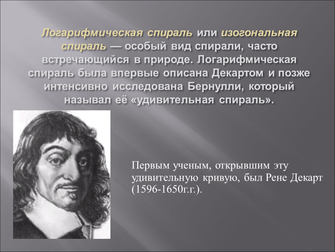 Первым ученым, открывшим эту удивительную кривую, был Рене Декарт (1596-1650г.г.).
