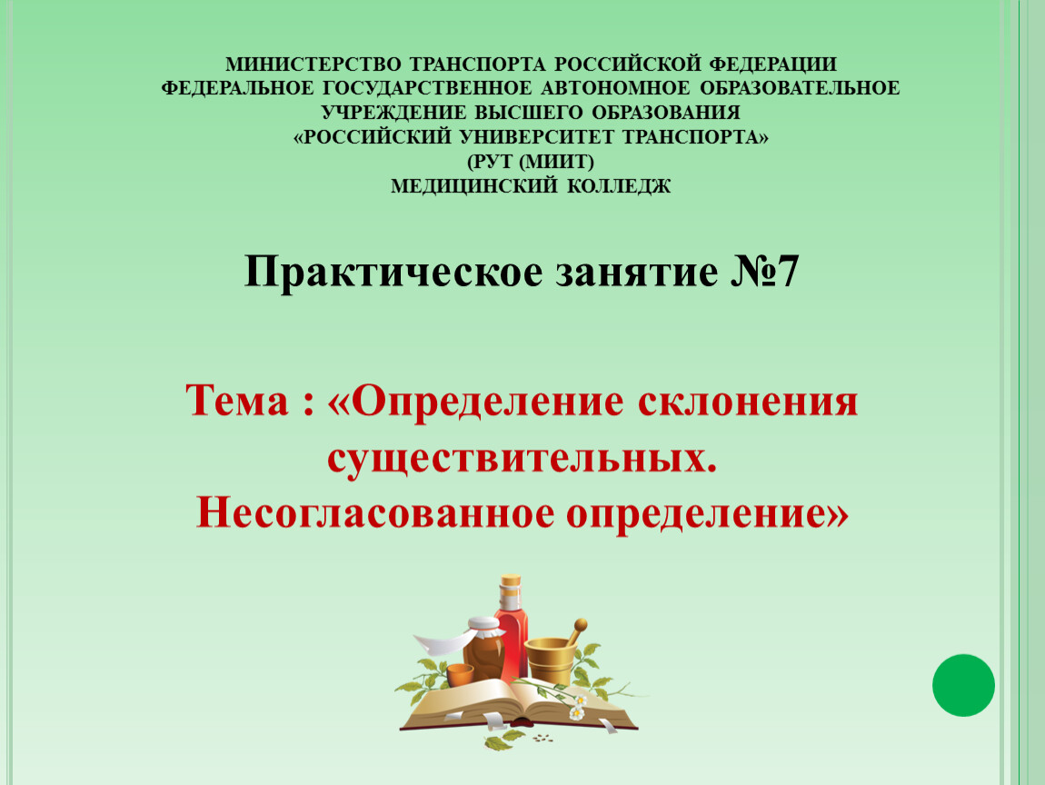 МИНИСТЕРСТВО ТРАНСПОРТА РОССИЙСКОЙ ФЕДЕРАЦИИФЕДЕРАЛЬНОЕ ГОСУДАРСТВЕННОЕ АВТОНОМНОЕ ОБРАЗОВАТЕЛЬНОЕ УЧРЕЖДЕНИЕ ВЫСШЕГО ОБРАЗОВАНИЯ«РОССИЙСКИЙ УНИВЕРСИТЕТ ТРАНСПОРТА»(РУТ (МИИТ)МЕДИЦИНСКИЙ КОЛЛЕДЖ