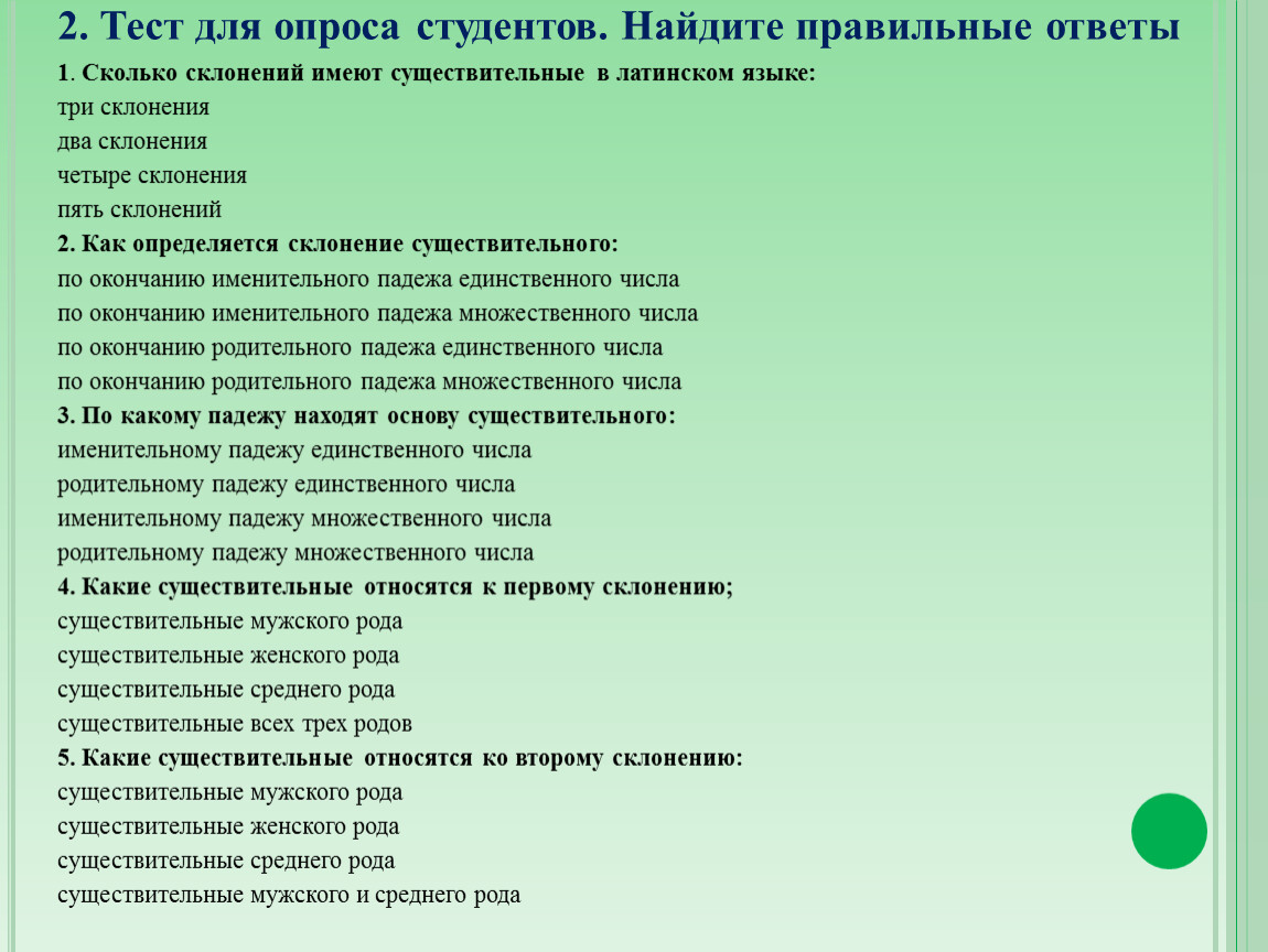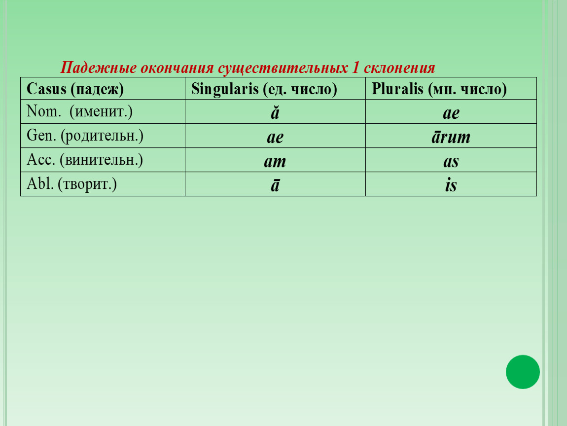 12. Перечислите названия падежей на латинском языке, которые используются в медицине