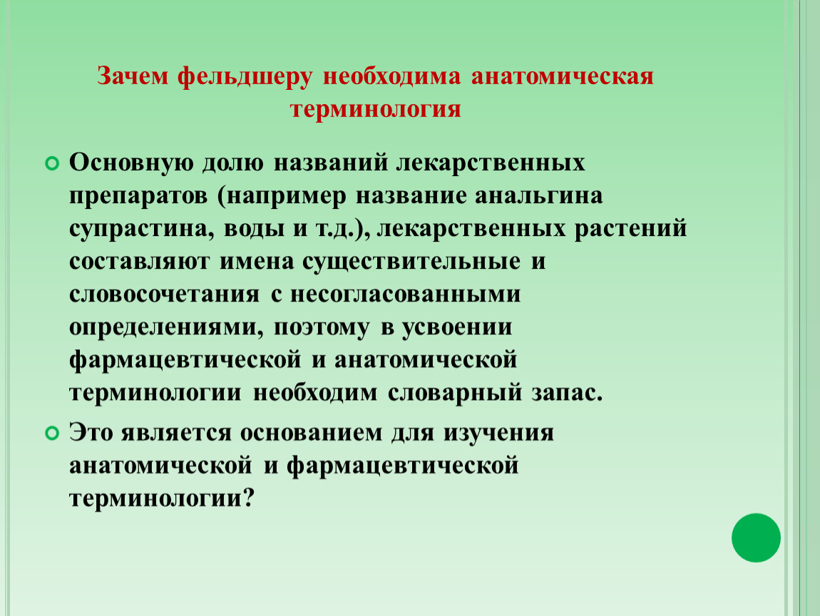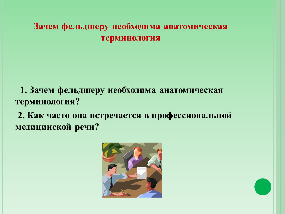 1. Зачем фельдшеру необходима анатомическая терминология?