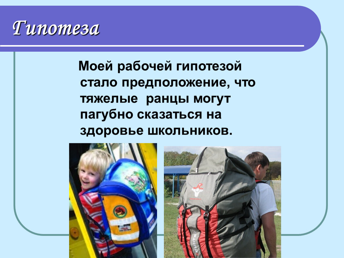 Моей рабочей гипотезой стало предположение, что тяжелые ранцы могут пагубно сказаться на здоровье школьников.