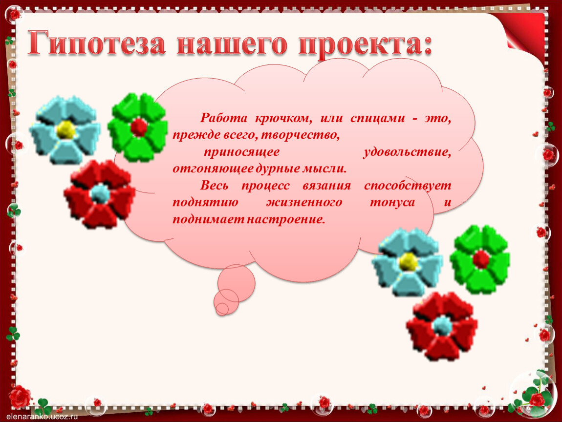 Весь процесс вязания способствует поднятию жизненного тонуса и поднимает настроение.