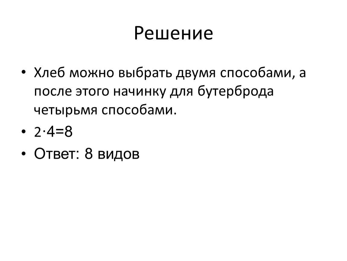 Хлеб можно выбрать двумя способами, а после этого начинку для бутерброда четырьмя способами.
