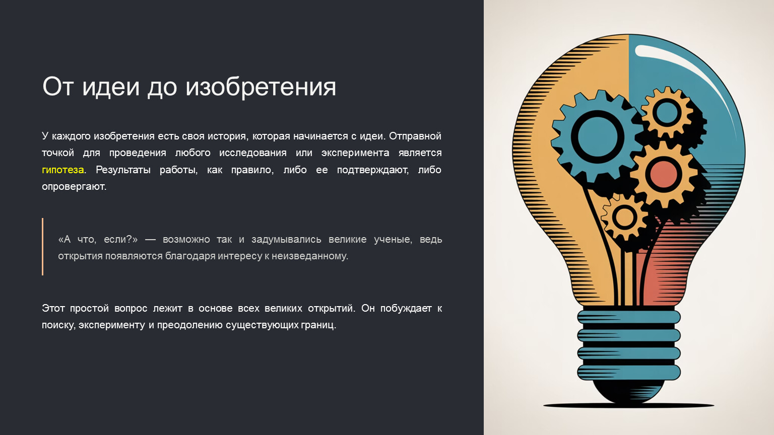 У каждого изобретения есть своя история, которая начинается с идеи. Отправной точкой для проведения любого исследования или эксперимента является гипотеза. Результаты работы, как правило, либо ее подтверждают, либо опровергают.