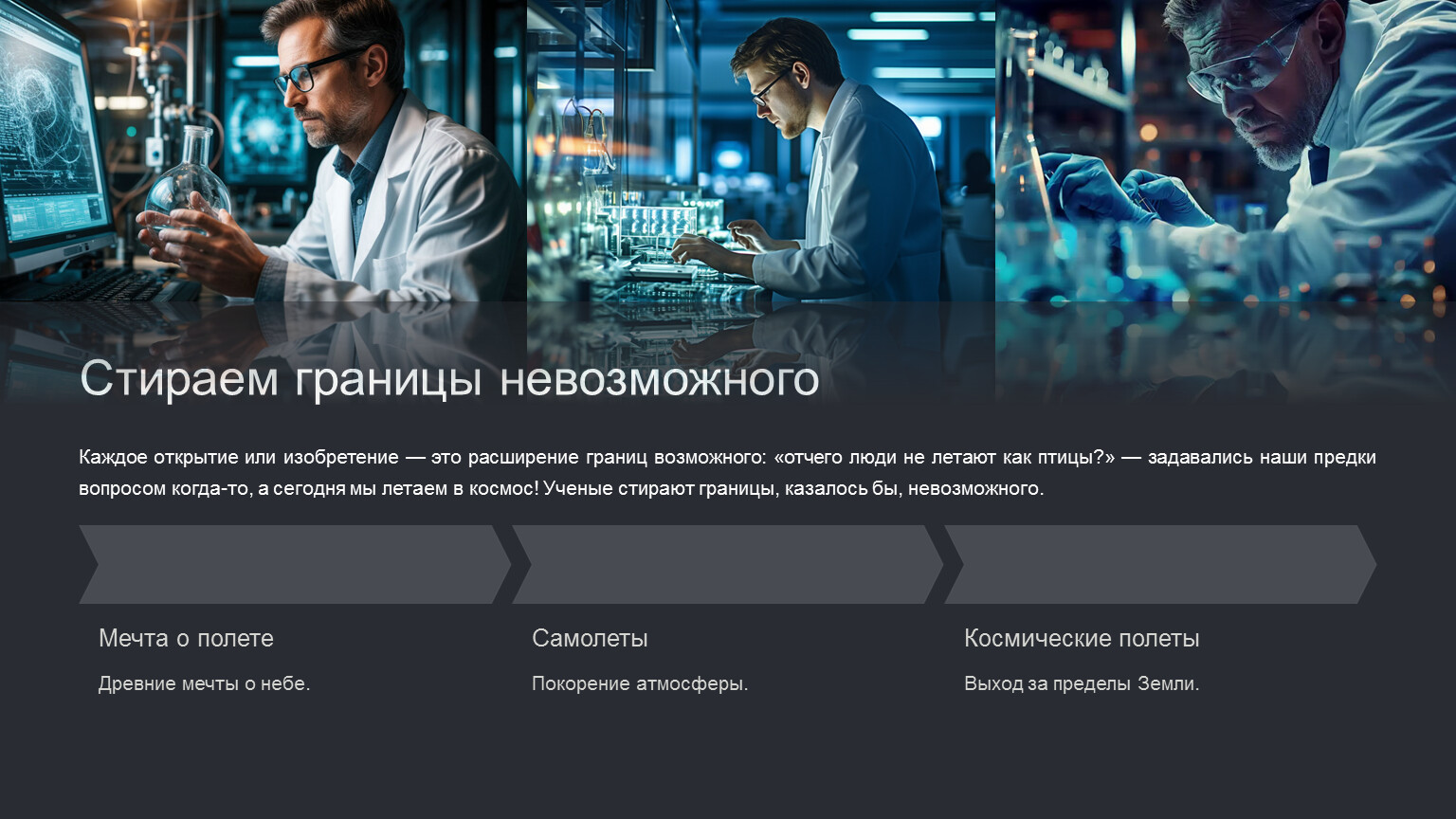 Каждое открытие или изобретение — это расширение границ возможного: «отчего люди не летают как птицы?» — задавались наши предки вопросом когда-то, а сегодня мы летаем в космос! Ученые стирают границы, казалось бы, невозможного.