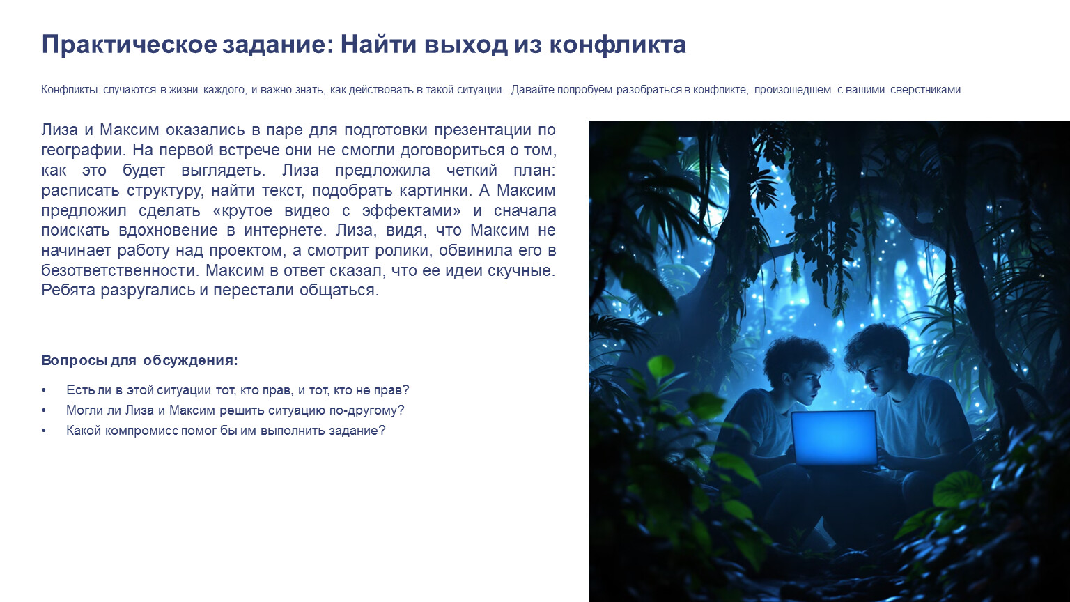Конфликты случаются в жизни каждого, и важно знать, как действовать в такой ситуации. Давайте попробуем разобраться в конфликте, произошедшем с вашими сверстниками.