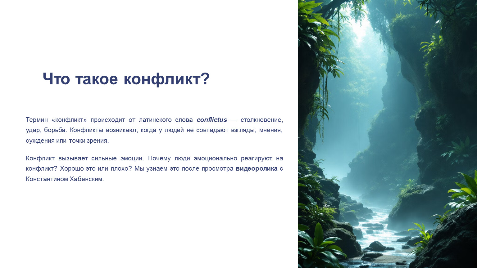 Конфликт вызывает сильные эмоции. Почему люди эмоционально реагируют на конфликт? Хорошо это или плохо? Мы узнаем это после просмотра видеоролика с Константином Хабенским.