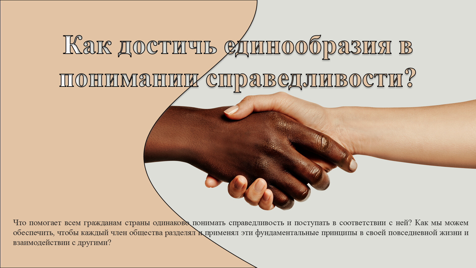 Что помогает всем гражданам страны одинаково понимать справедливость и поступать в соответствии с ней? Как мы можем обеспечить, чтобы каждый член общества разделял и применял эти фундаментальные принципы в своей повседневной жизни и взаимодействии с другими?