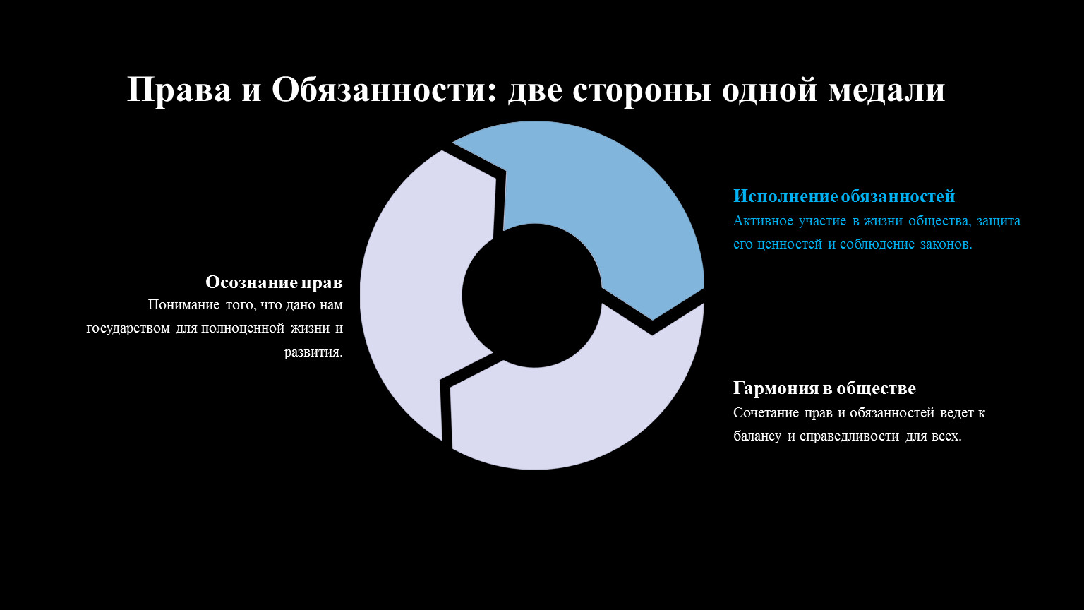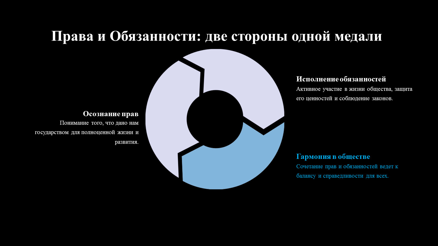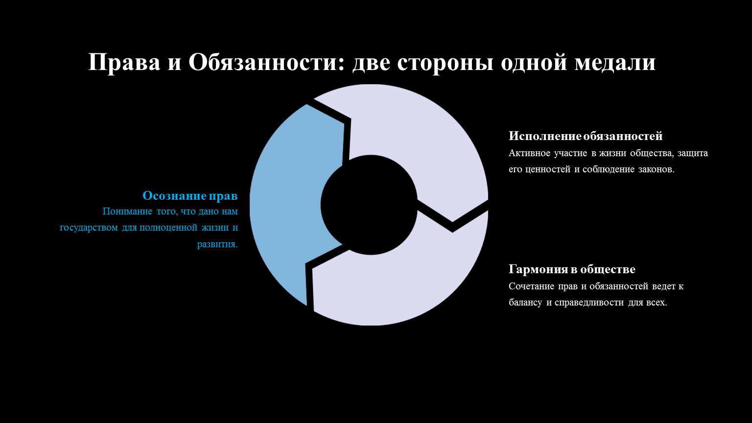 На одной чаше – права каждого гражданина: на жизнь, на охрану здоровья, образование, а на другой – обязанности: соблюдать законы, защищать свою страну, беречь окружающую природу, историческое и культурное наследие.