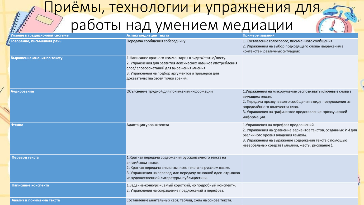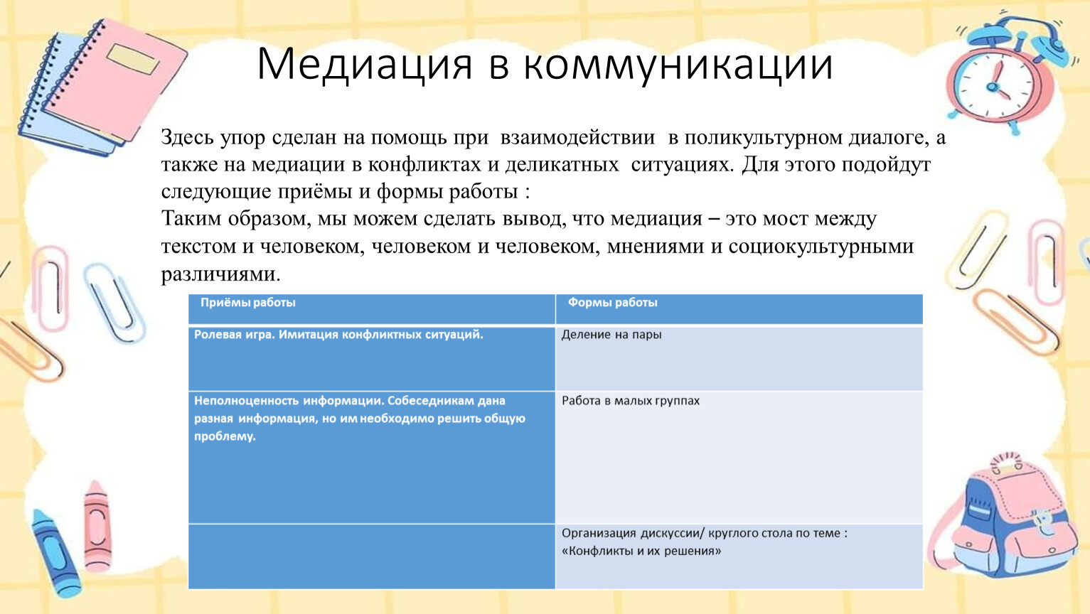 Приёмы, технологии и упражнения для работы над умением медиации