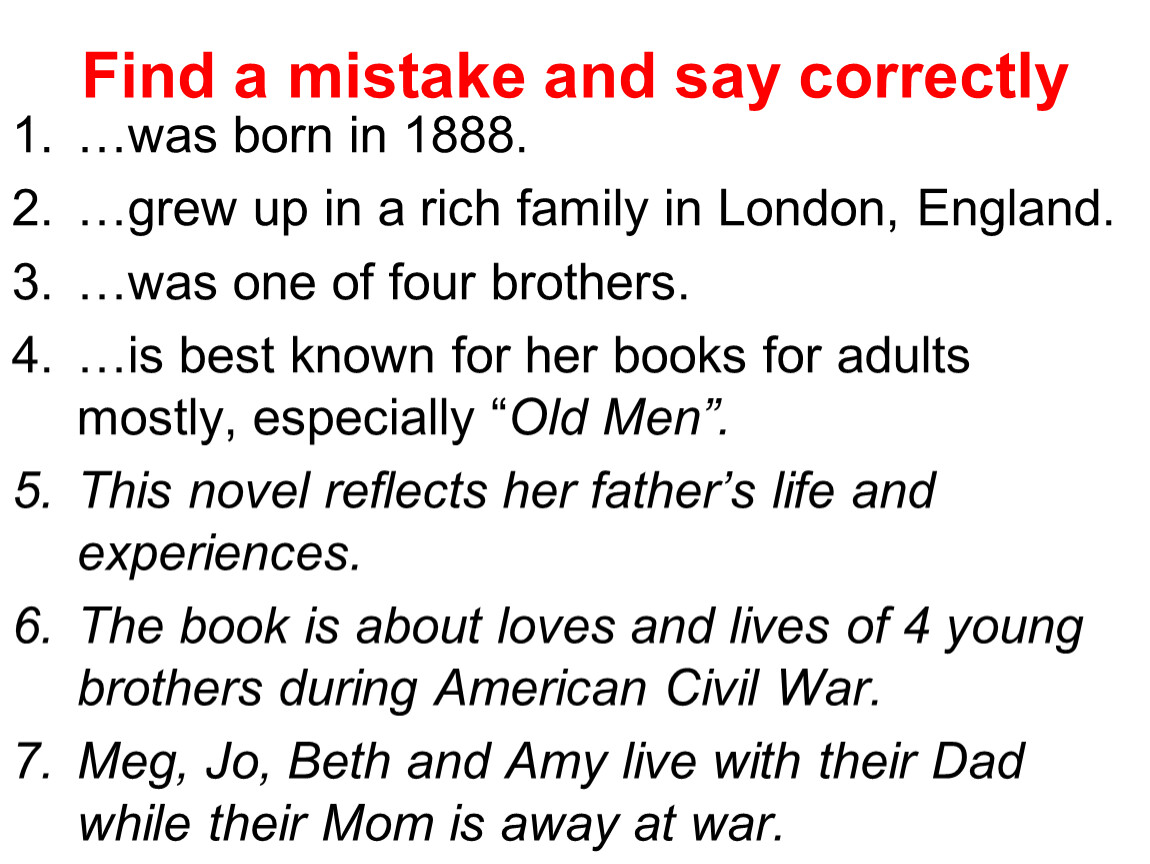 Find a mistake and say correctly