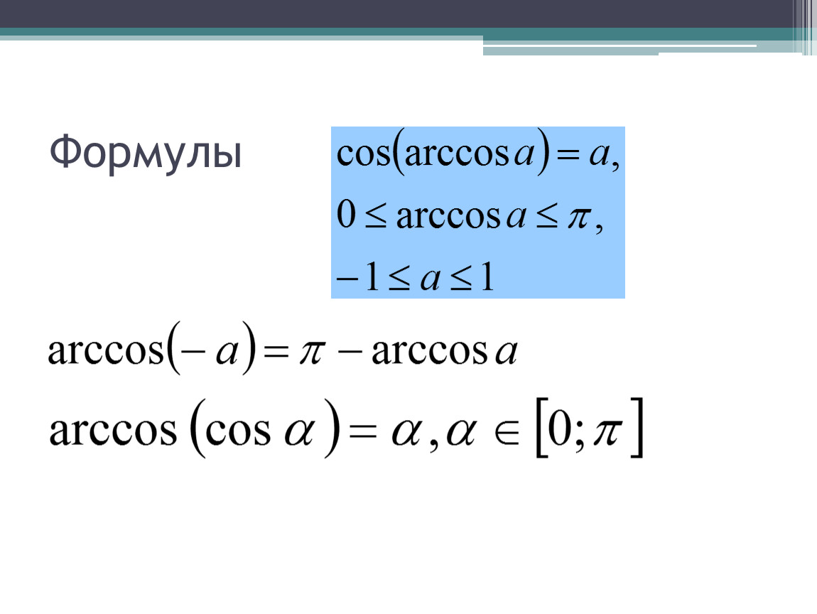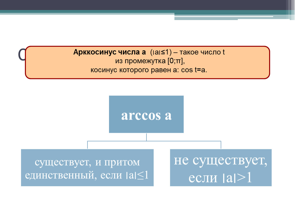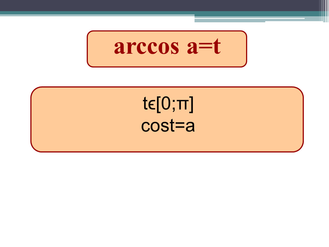 Выучить определение арккосинуса, формулу для решения уравнения cost=a,