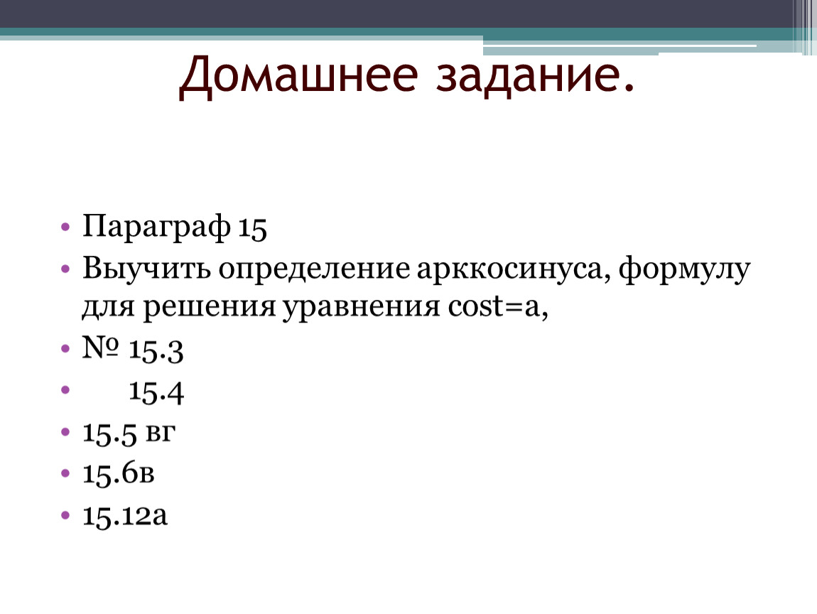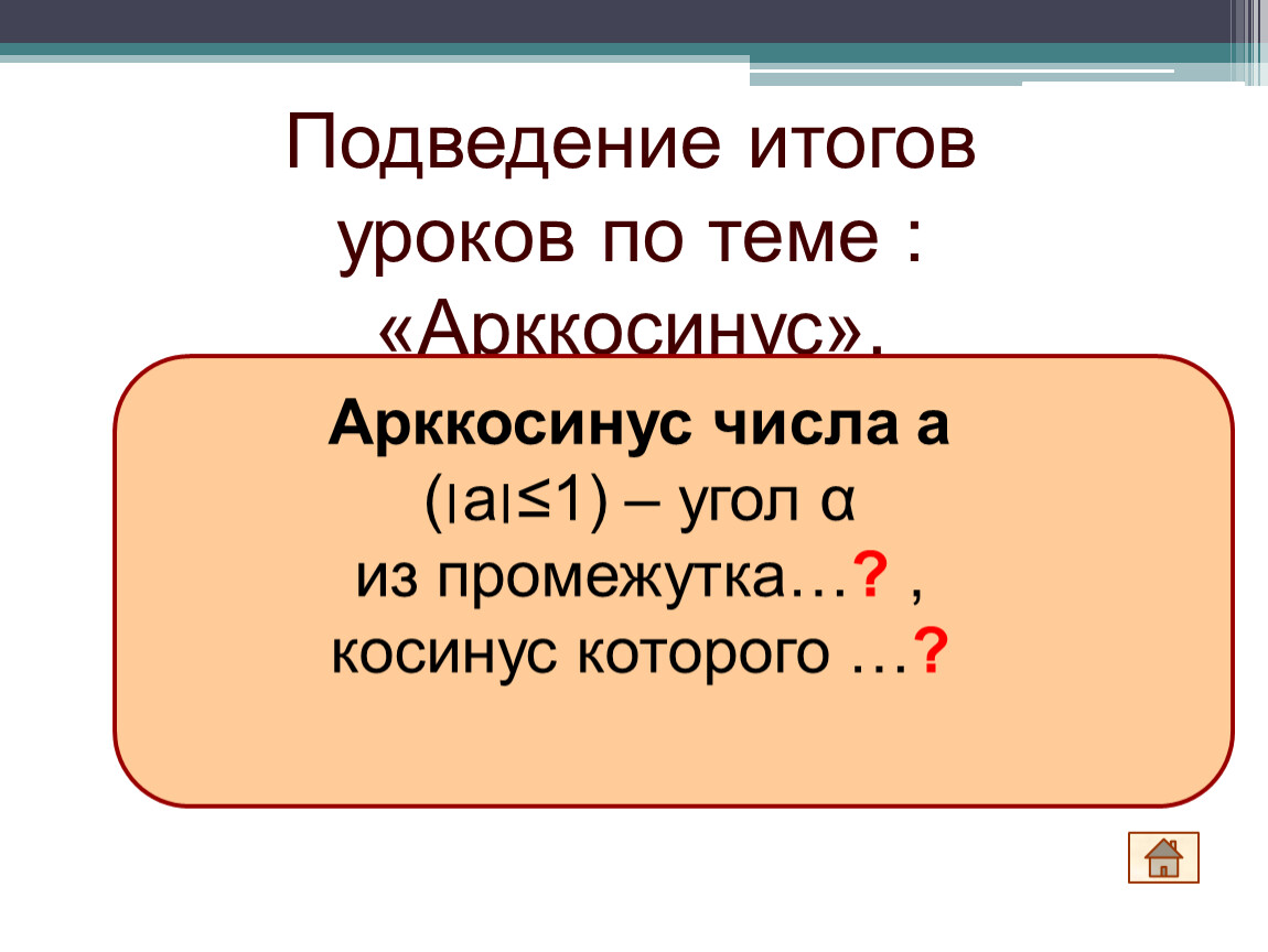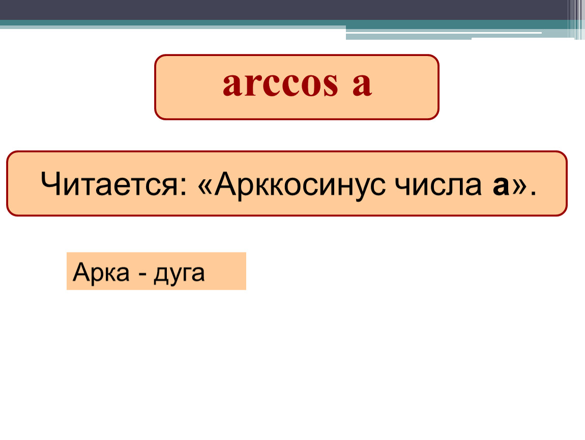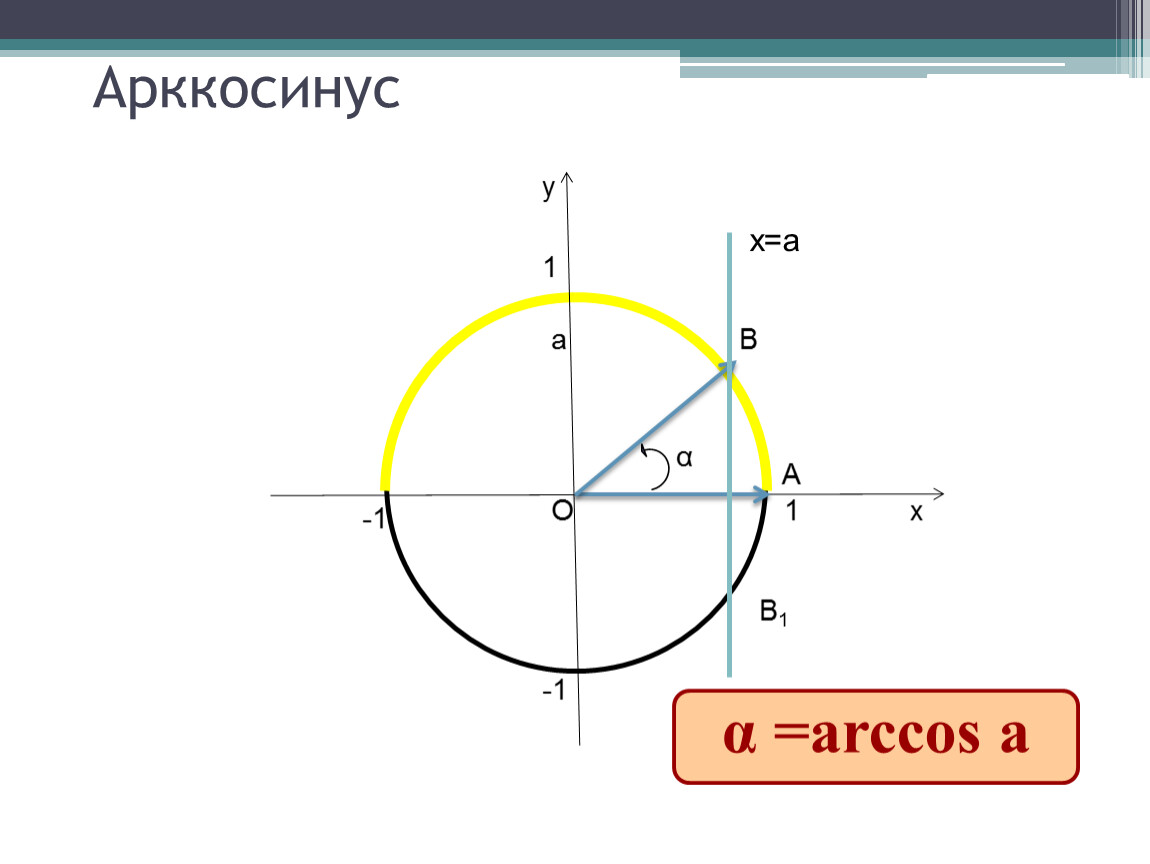 Выучить определение арккосинуса, формулу для решения уравнения cost=a,