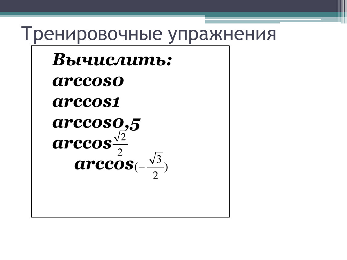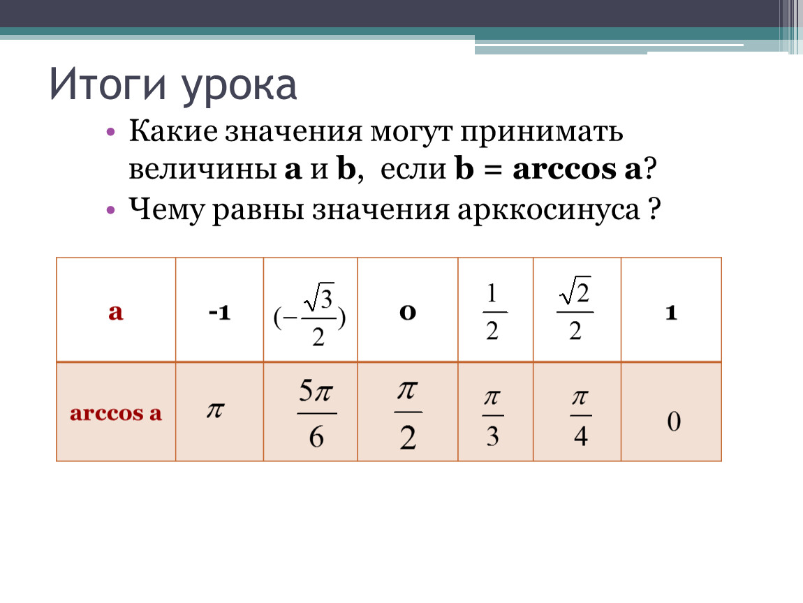 Чему равны значения арккосинуса ?