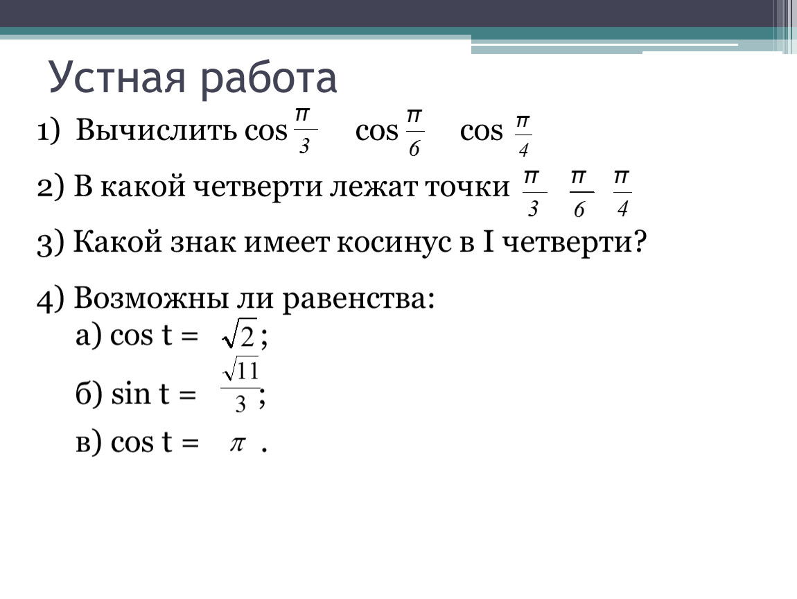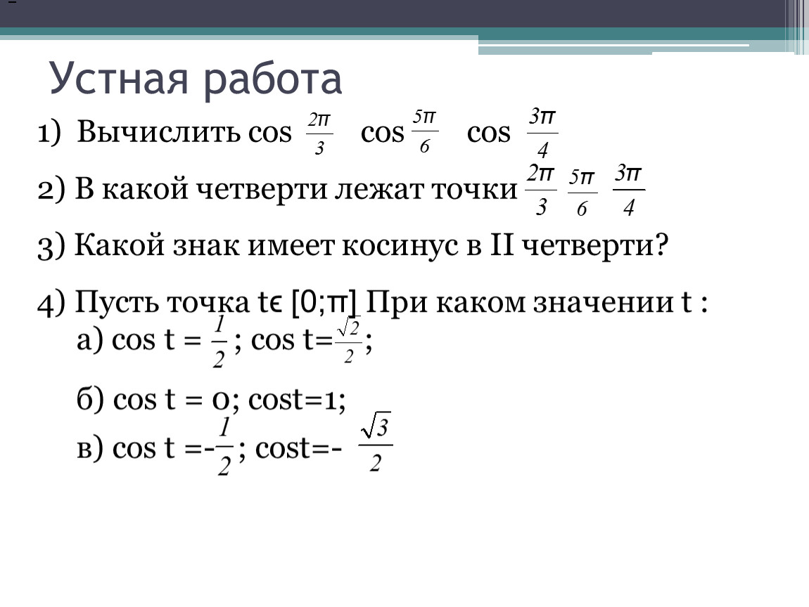 а) соs t = ; cos t= ;