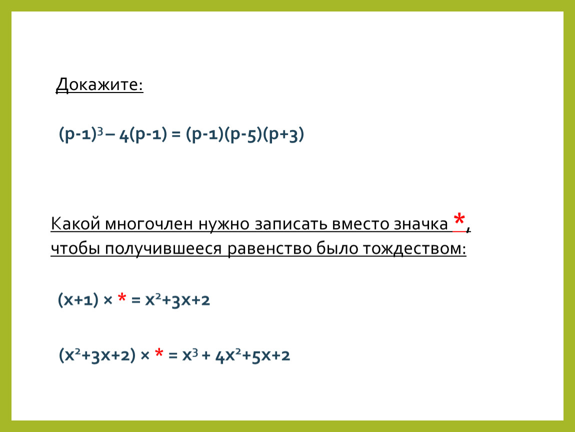 Какой многочлен нужно записать вместо значка *, чтобы получившееся равенство было тождеством: