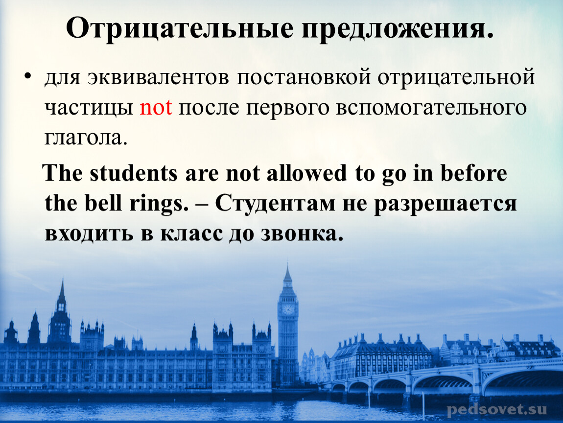 для эквивалентов постановкой отрицательной частицы not после первого вспомогательного глагола.