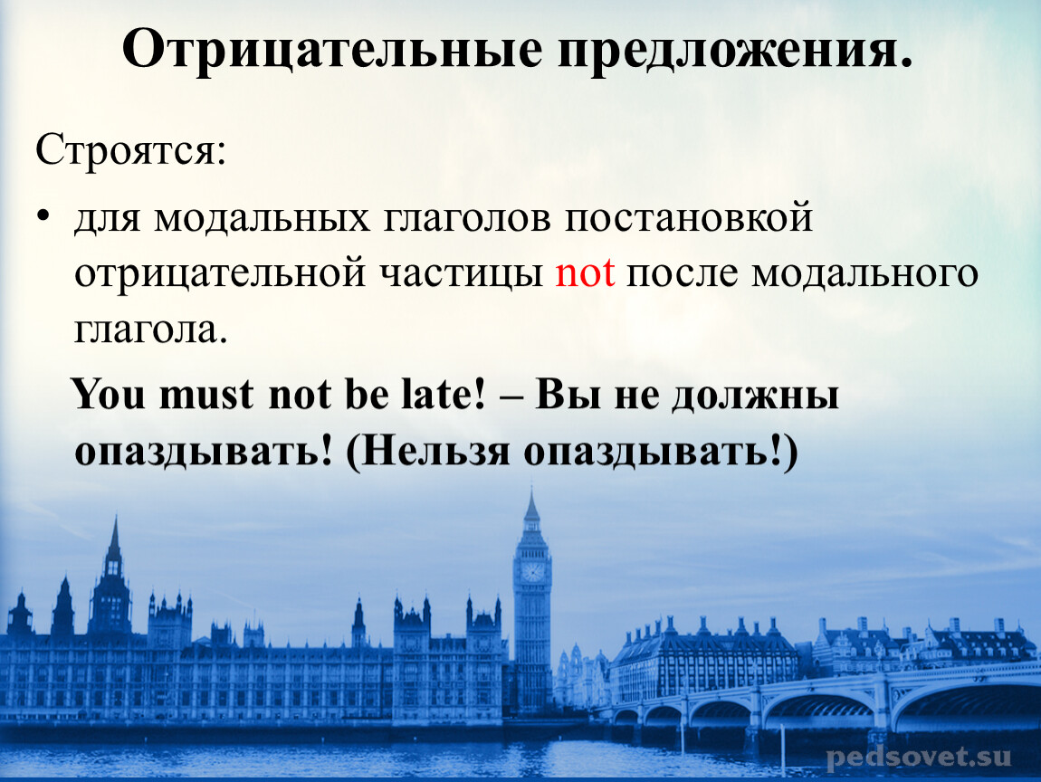 для модальных глаголов постановкой отрицательной частицы not после модального глагола.