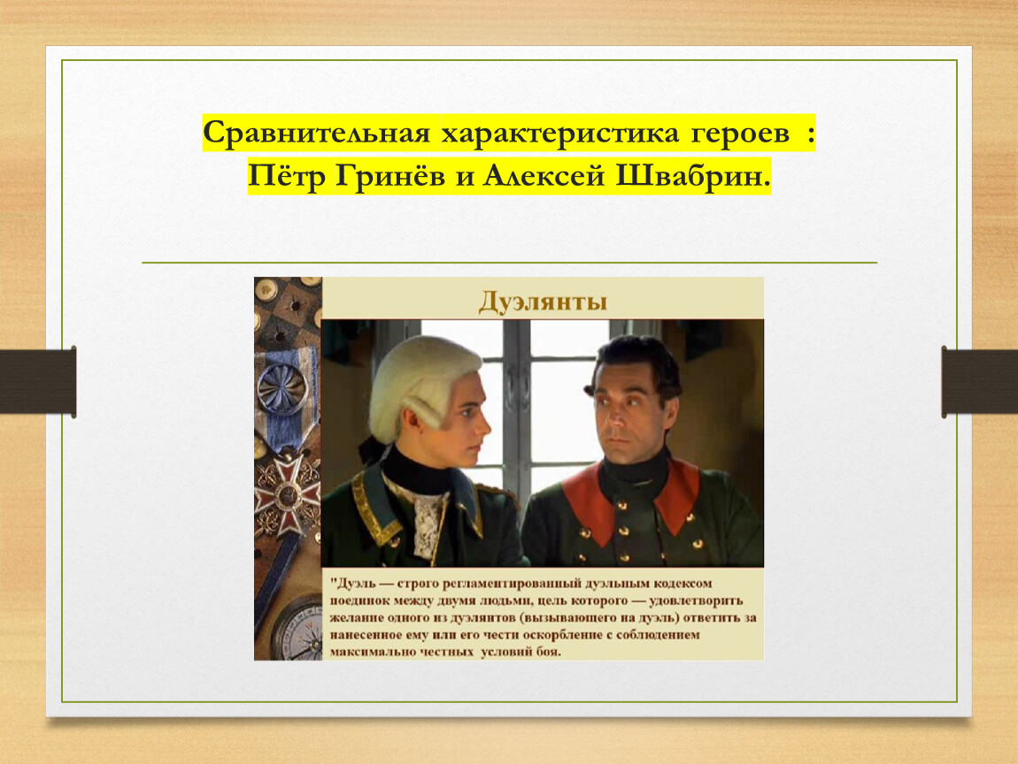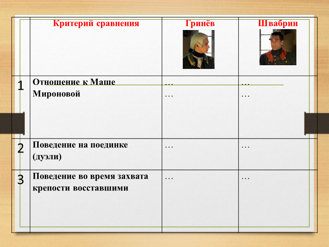 | Критерий сравнения | Гринёв | Швабрин |