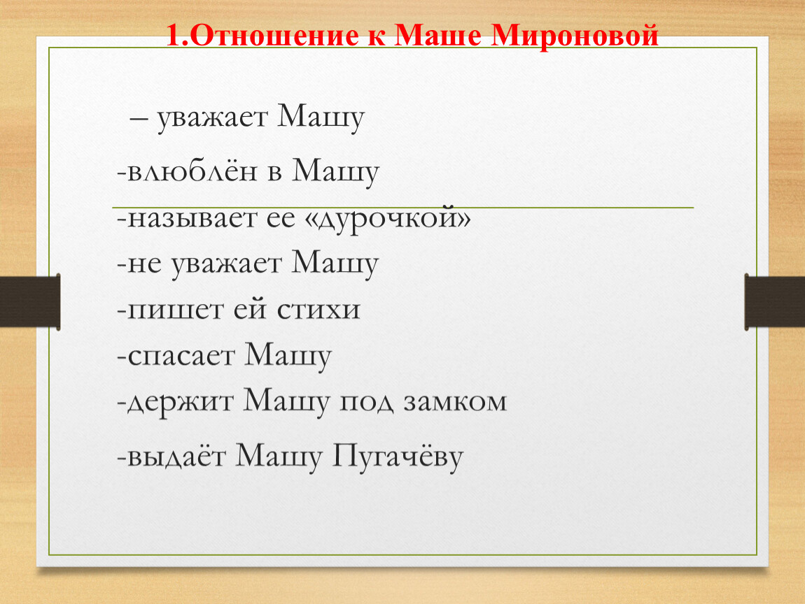 1.Отношение к Маше Мироновой