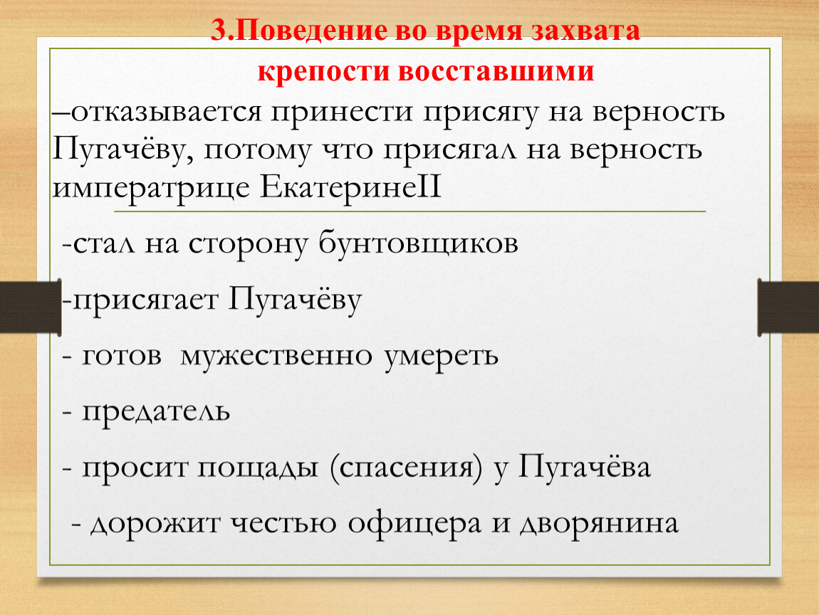 3 | Поведение во время захвата крепости восставшими | ||