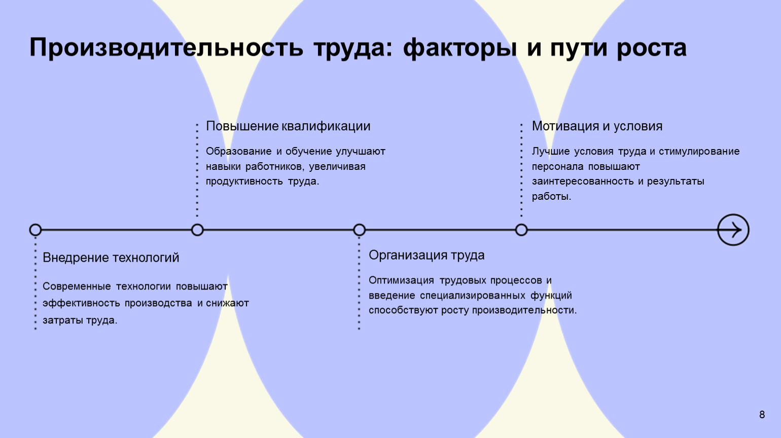 Повышение квалификации Образование и обучение улучшают навыки работников, увеличивая продуктивность труда.
