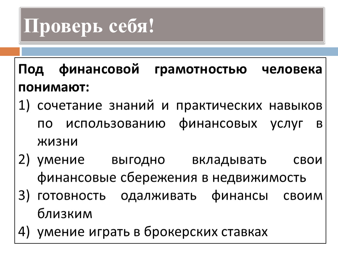 сочетание знаний и практических навыков по использованию финансовых услуг в жизни