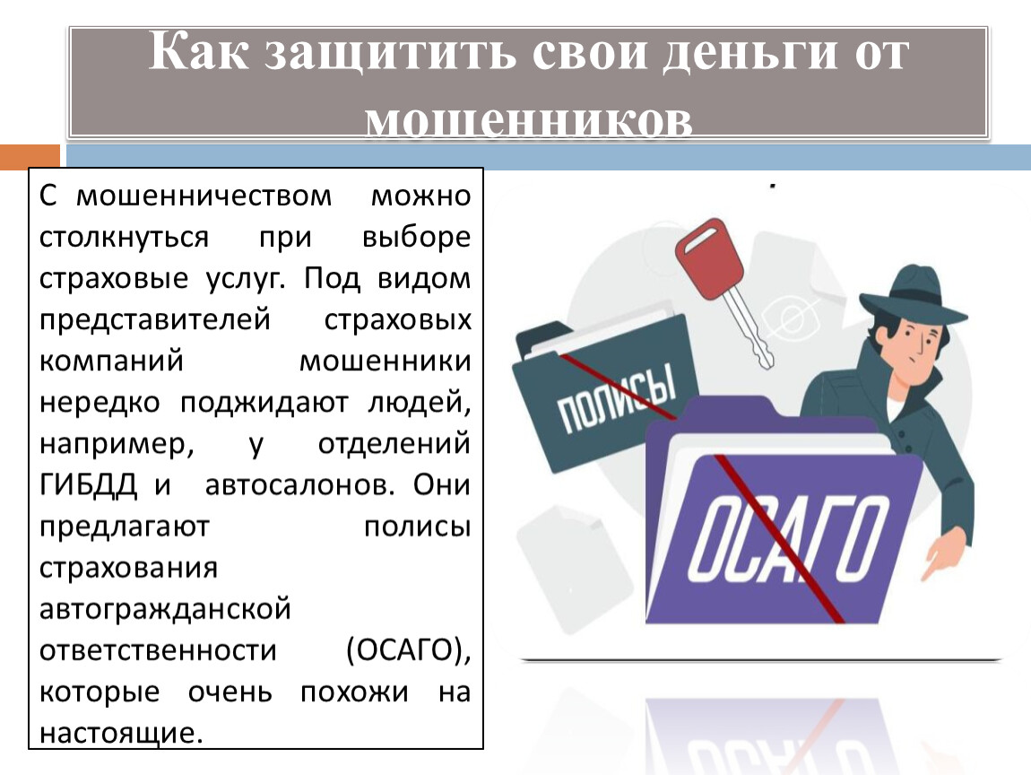 С мошенничеством можно столкнуться при выборе страховые услуг. Под видом представителей страховых компаний мошенники нередко поджидают людей, например, у отделений ГИБДД и автосалонов. Они предлагают полисы страхования автогражданской ответственности (ОСАГО), которые очень похожи на настоящие.